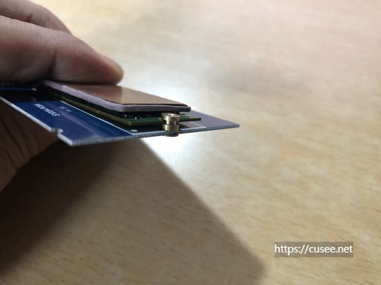 60mm에 나사가 체결되어 있는데, 이 부분을 풀어서 끝부분인 80mm로 옮기면 된다. 나사 지지대 중간에는 홈이 있어 SSD를 그 사이에 끼워 고정시키는 방식이므로 지지대 위로 SSD를 얹고 나사로 조이는 방식은 아니다.