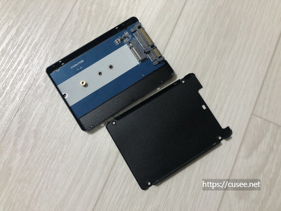 SSD를 체결하고 나면 케이스는 별도의 나사없이 보드를 알루미늄 케이스에 고정시킬 수 있다. 플라스틱 돌출부가 케이스의 홈에 끼워지면 움직이지 않는 그런 방식이다.
