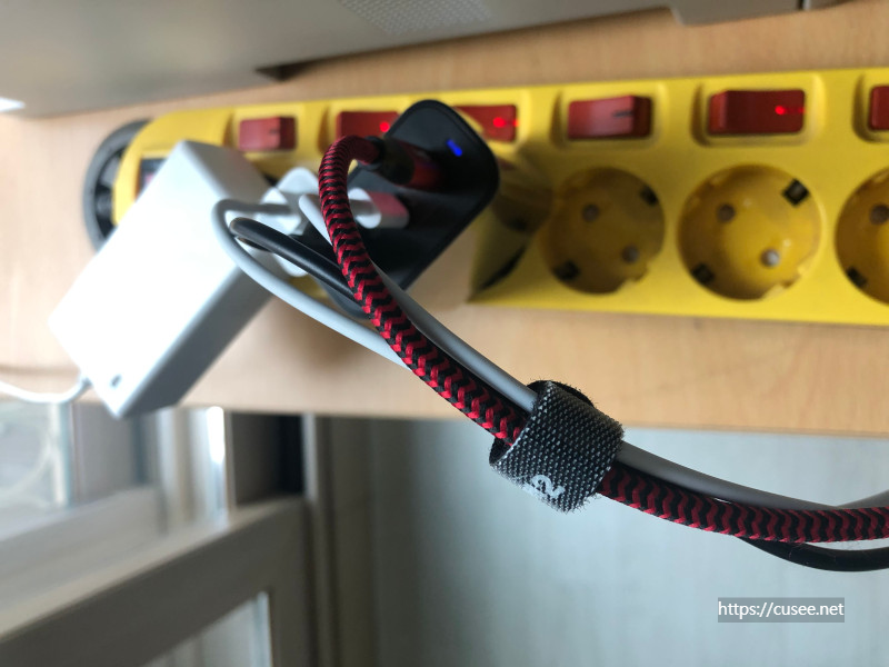 케이블은 여느 저렴이 케이블과는 확연히 달라 패브릭으로 감싸져 있으며, 여러 가닥의 굵은 케이블이 들어가 있다는 것은 만져보면 금방 알 수 있다. 결국 전기는 굵고 순도 높은 도체를 통해야 효율적으로 흐른다. 케이블 내구성을 가늠할 수 있는 커넥터 부분의 디자인은 나름대로 신경을 쓴 흔적이 보인다. 케이블 타이가 기본적으로 제공되는 부분도 마음에 든다.