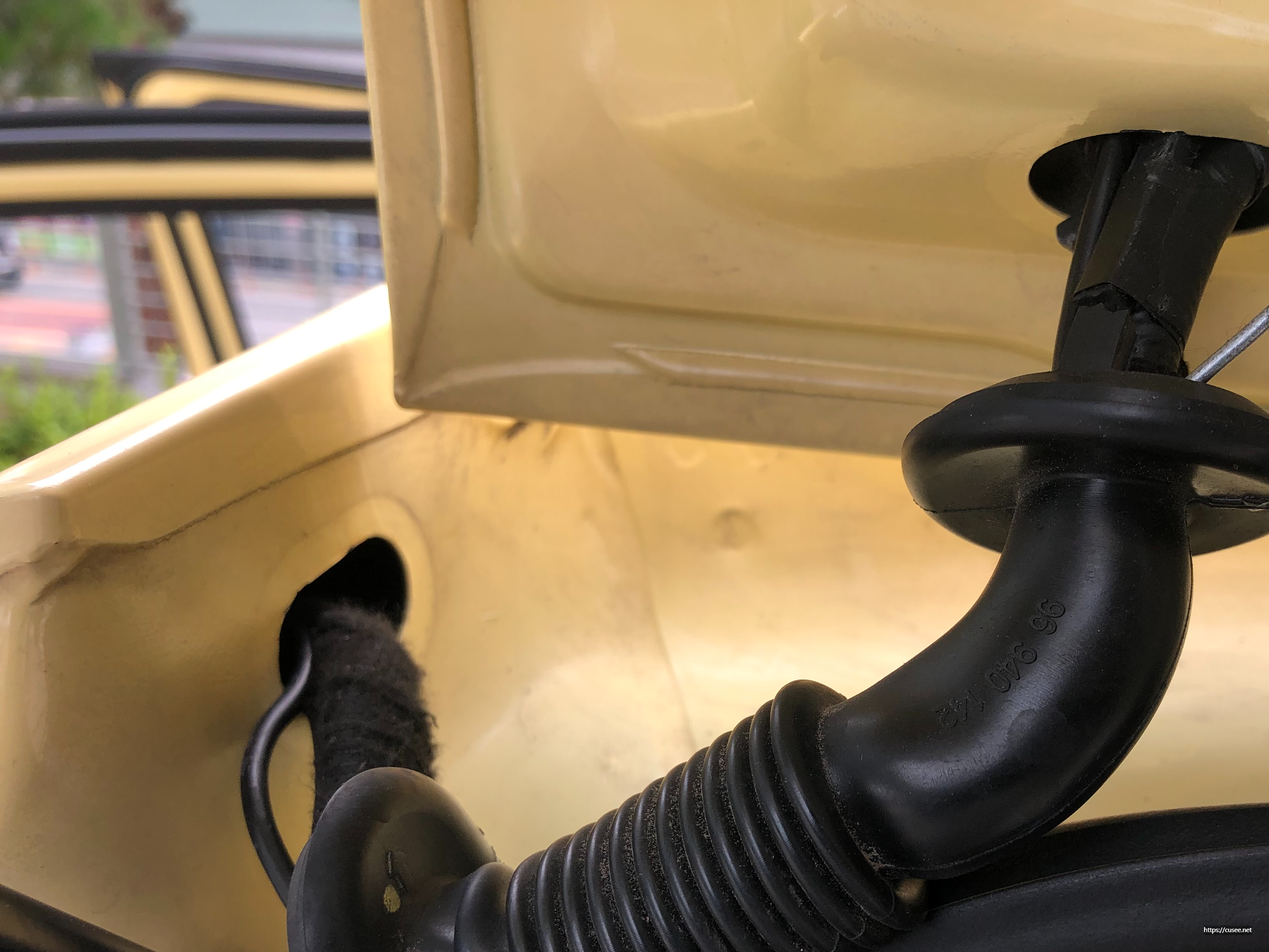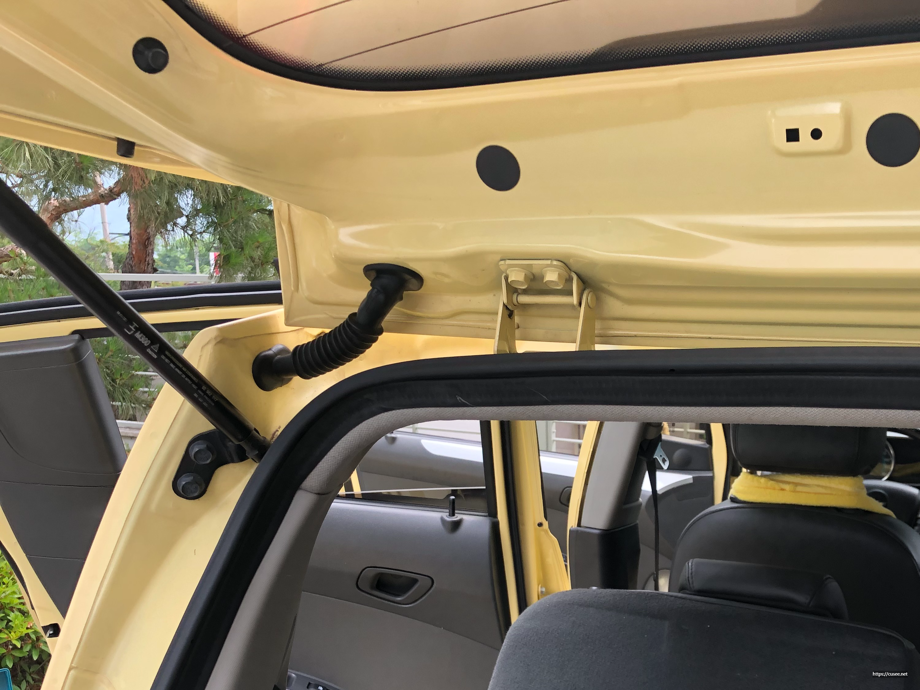 이 부분이 가장 말도 많고, 셀프시공 시 난이도가 가장 높은 구간이다. 트렁크 문을 열면 뒷유리 와이퍼, 브레이크등, 후진 카메라 케이블이 이어지는 고무관을 하나 보게 된다. 빗물방지를 위해 차체와 꼭 맞게 처리되어 있는데, 이 부분으로 안내선 철사를 밀어 넣는 작업부터 한다.