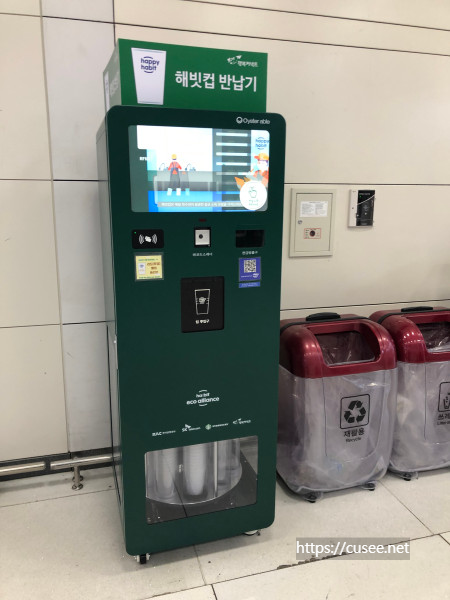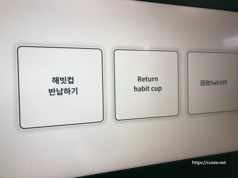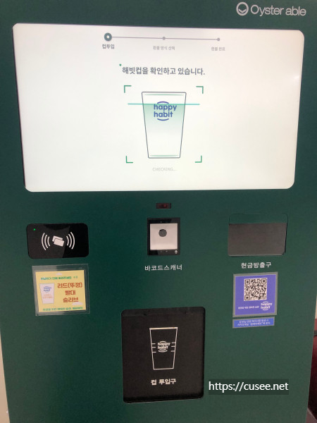 반납기가 해빗컵이 맞는지 검사한다. 아마도 컵에 새겨진 글자 문양으로 판독을 하는 것으로 보인다. 다른 컵을 넣었을 때 어떤 결과가 나올지도 궁금하다.