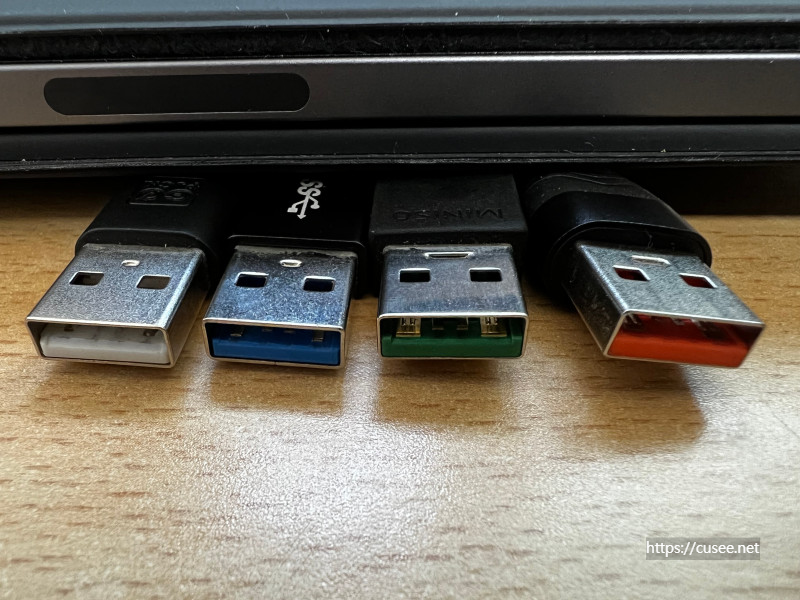 그리고, PC USB 포트에서 볼 수 있는 파란색은 다들 알고 있는 USB 3.0 SuperSpeed 버전이다. USB 2.0이 최대 480Mbps의 속도를 지원하는데, USB 3.0은 최대 5Gbps, USB 3.1은 10Gbps를 지원한다. 현재 상용화된 최대 버전은 USB 3.2인데, 최대 20GBps의 속도를 지원한다.