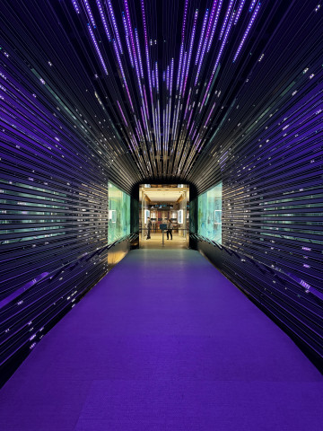뭔가 우주로 빨려 들어가는 듯한 통로를 지나면 엘리베이터를 만난다. 안내 직원이 인원수를 맞춰 차례로 엘리베이터로 입장시킨다.