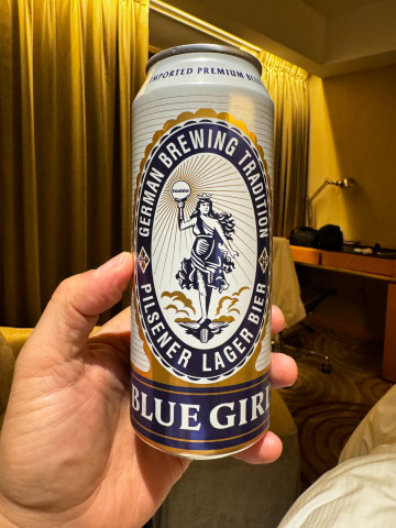 호텔로 돌아오는 길에 마트에서 구입한 홍콩맥주 Blue Girl... 맛없다. 마셔보고 살 걸. 4캔 한 묶음... 언제 다 먹나...