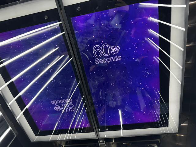 100층(사실 90층을 올라간 것)을 순식간에 올라갔던 경험은 내려올 때 한번 더 경험하게 된다. 엘리베이터 천정은 내려올 때 카운팅을 보여준다. 딱 60초!