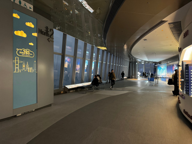 각종 상점과 아이스링크도 지나고안내표지를 따라가면 에스컬레이터로 한 층 더 올라가면 본격적으로 Elements 쇼핑몰들의 가게들이 나타난다. 계속해서 안내표지를 따라가면 광장인 것 같은 홀을 하나 만나는데(춘절 조형물이 하나 있는데, 기간이 끝나면 없어질 듯) 그러면 Sky100에 다 온 것이다. 안내표지 따라가면 된다.