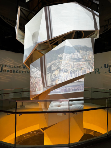 Sky100에 올라갔을 때의 홍콩 전경 파노라마 사진을 담은 조형물을 지나고,