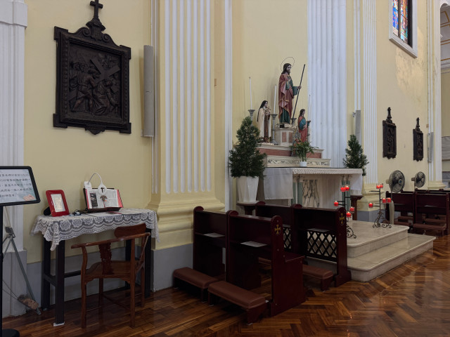 만다린하우스를 나와서 다시 북쪽으로 걸어가다보면 왼쪽에 성당을 하나 만나게 된다. '성 로렌스 성당'인데, 천주교 신자라면 한번 들어가볼만 하다. 마카오 성당은 어떻게 되어 있을까 궁금하면 들어가보자. 봉헌함엔 친절하게 한글도 적혀 있는 것으로 봐서 한국인 교인들도 자주 들르는 곳인 것 같다.