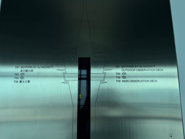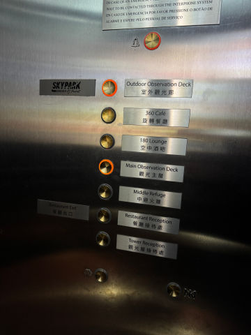 티켓으로 방문할 수 있는 곳은 58층 메인 전망대와 61층 전망대(외부 연결)이다. 사전 예약이 가능하며, 현장 티케팅보다 저렴하기 때문에 바로 전날(마카오 도착한 날) 예매했다. 엘리베이터는 초고속으로 223m 높이의 전망대로 곧장 올려다 주었다.