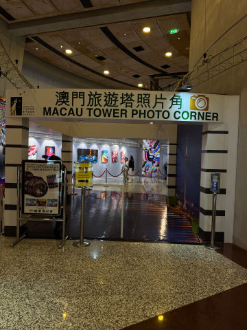 마카오타워는 지상이 아닌 지하층에서 올라가야 한다. 따라서 에스컬레이터를 타고 내려와서 입장권 구입하는 곳을 찾고, 그 근처에서 입구를 찾을 수 있다. 입구는 포토코너라는 곳으로 들어가는데, 기념사진 찍을 거냐고 묻는데, 가볍게 'No Thanks' 라고 사양하고 바로 지나 검표원에게 QR 입장권 체크 후 엘리베이터를 탔다.