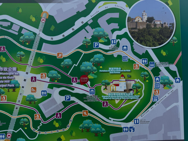 기아요새도 사실 못갈뻔한 곳이었는데, 지도상으로는 별로 멀어보이지 않은 지척의 거리에 위치해 있었다. 구글맵으로 검색하면 걸어서 20분, 1.5km 정도의 거리다. 마카오 시가지 구경도 한다는 꼬임으로 아내를 끌고 갔지만, 정작 문제는 기아요새 부근에서는 급격하게 경사진 산을 오르는 지형을 만난다는 점이다.