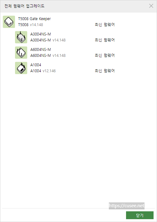 펌웨어 업그레이드를 선택하면 연결된 콘트롤러, 에이전트 모두 펌웨어 버전을 체크해 주고, 업데이트 가능 여부도 보여준다. 공유기별로 접속해서 펌웨어 업데이트 할 필요 없다. 특히 iptime의 업데이트에 대한 열정을 생각한다면 이런 기능은 필수라고 할 수 있다.